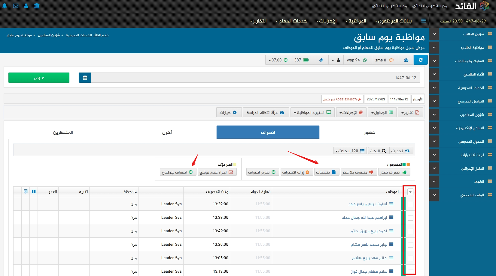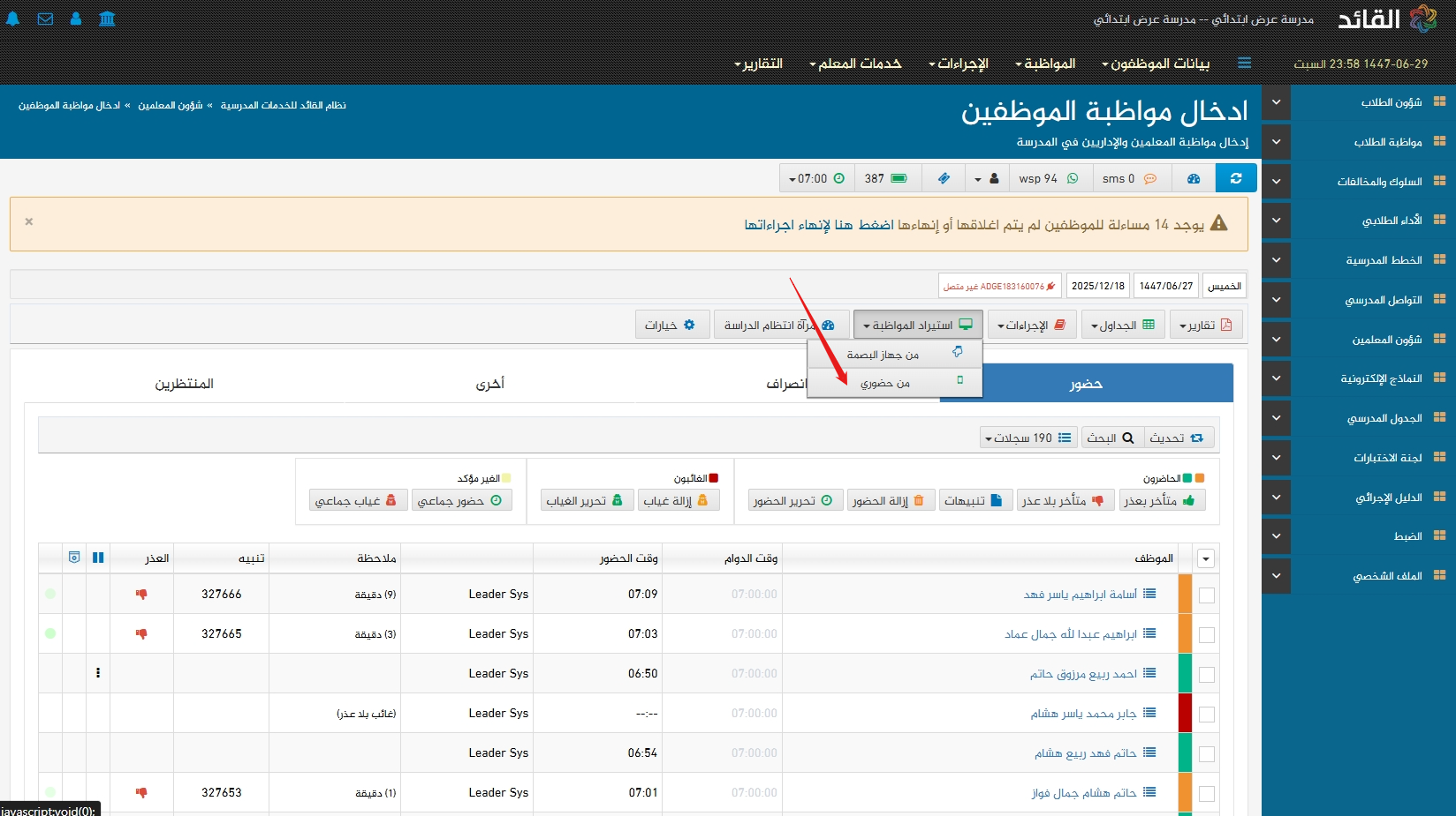 ادخال مواظبة المعلمين والموظفين بطريقة سهلة ومبسطة وسريعة واستخراج التقارير اليومية للموظفين الغائبين والمتأخرين